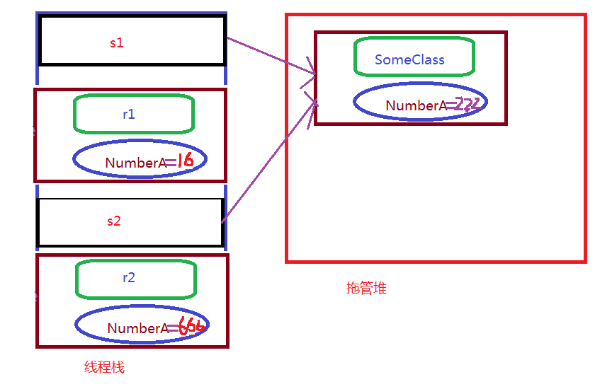 Console.WriteLine("r1的值为:{0} \t r2的值为:{1}", r1.NumberA, r2.NumberA);