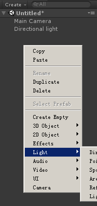 | Audio(音效) | 添加音频,可以创建声音源和声音的听者 | 无 |